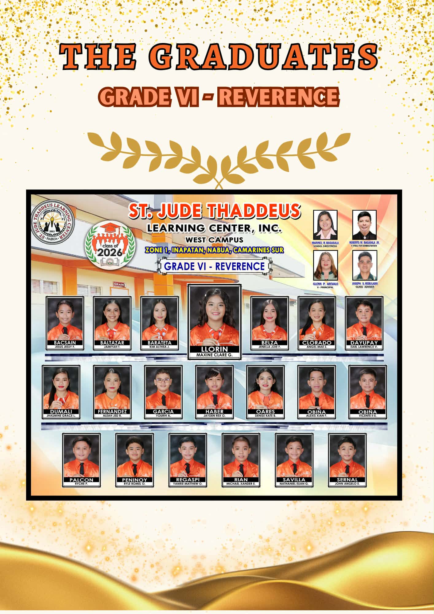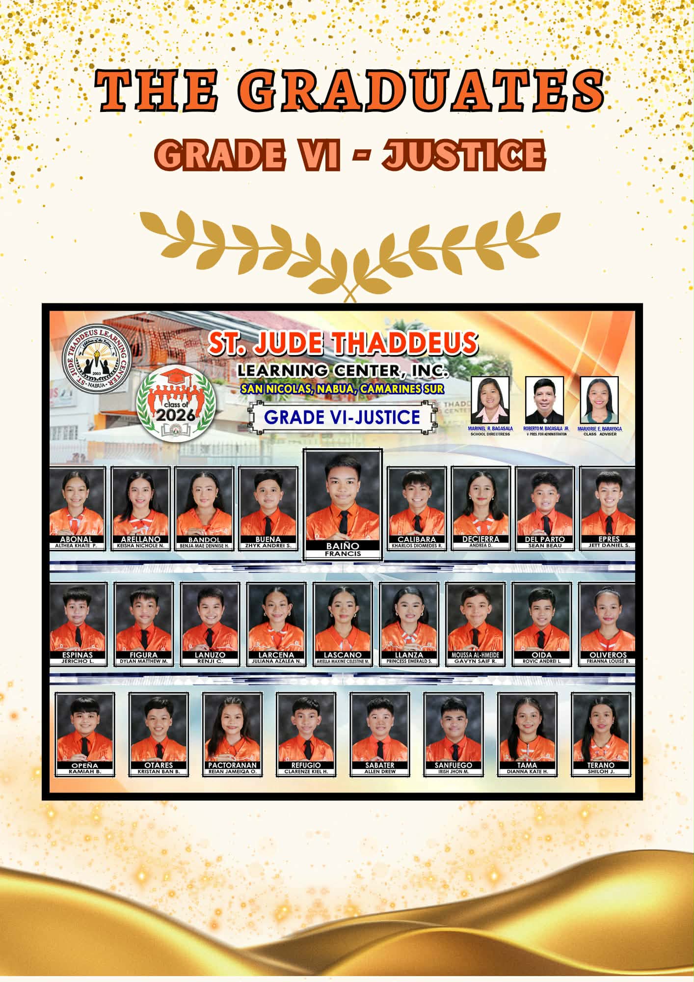 Thaddeans Graduates of 2026 Congratulations on reaching this wonderful milestone! Your hard work, courage, and determination have brought you this far, and we are truly proud of each one of you. As you move forward to a new chapter, always believe in yourselves and carry the values you have learned. Keep shining and continue to make us proud! Your SJTLC Family
